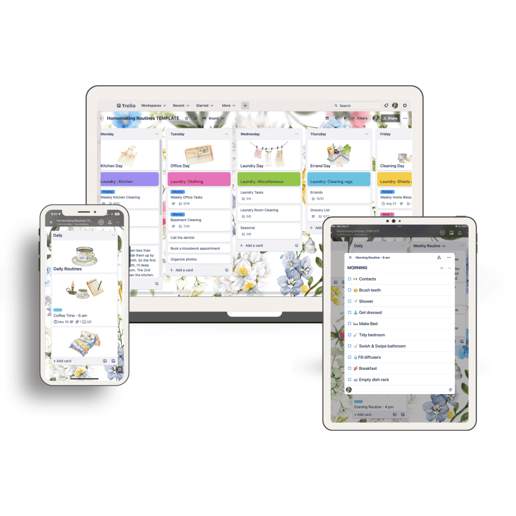 Organize your daily and weekly routines with my Homemaking Routines Trello Template.